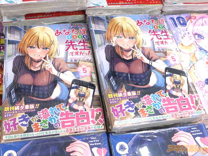 オビ謳い文句は『既刊続々重版!禁断の先生ハーレムラブコメ第5巻!』、『今回も単行本限定のもっとHな先生が見られる過激なおまけ漫画を収録!』、『好きが溢れて、まさかの告白!?』だった。